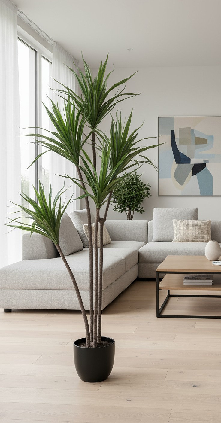 Dracena artificial para interior, sus tallos y hojas te sorprenderán por su aspecto natural. Alto 180 cms, 4 troncos.